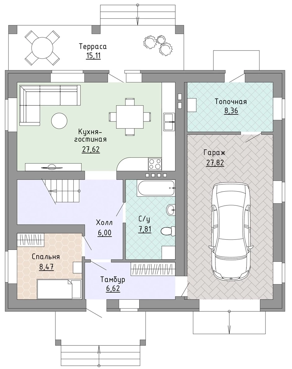 Мы готовы выполнить фундамент на выбор: ленточный, монолитная ж/б плита, свайно-ростверковый. Несущие стены также могут быть выполнены из различных материалов, выбирайте керамоблок, кирпич или газоблок. Перегородки могут быть выполнены из кирпича или газоблоков.